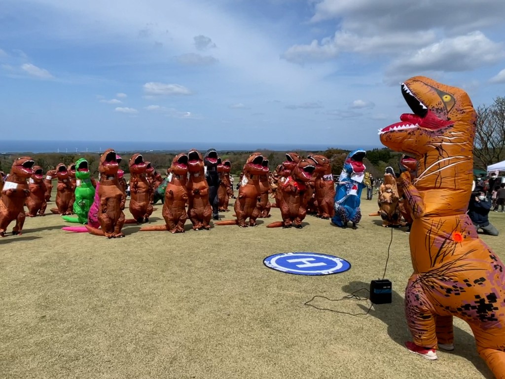 参加竜もスタッフも未経験の謎イベントにも関わらず、会場には100体を超えるティラノサウルスが集まりました。次々と会場の芝畑に現れるティラノサウルスを前に「普段どこにいるんですか?」という楽しいような怖いような感情を抱いたことを覚えています。